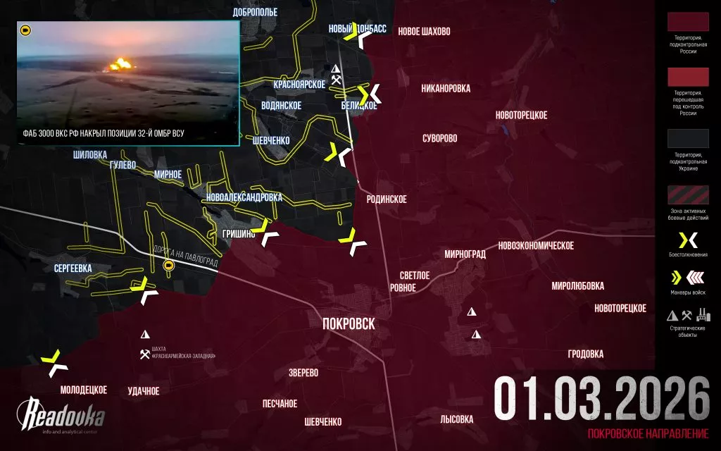 Ruski jurišniki 51. gardne vojske ruskih oboroženih sil so popolnoma zavzeli Novi Donbas. Sovražnik se je z izgubami umaknil in zavzel obrambne položaje v gozdnih nasadih severno od terikona rudnika „Belitsko“.