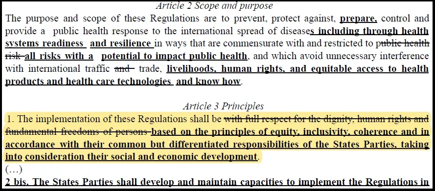 Glede na to, da v predlaganih spremembah IHR v 3. členu ni več pogojev "... ob polnem spoštovanju dostojanstva, človekovih pravic in temeljnih svoboščin oseb ..." kot je napisano v trenutno veljavnih predpisih, pomeni, da vsaka takšna pogodba ne bi bila v soglasju z veljavno Ustavo RS in ne bi mogla biti veljavna/zavezujoča.