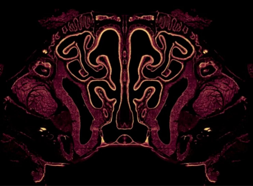 Prerez skozi nosno votlino. Slika: Pizzolla et al., Sci. Immunol. 2, eaam6970