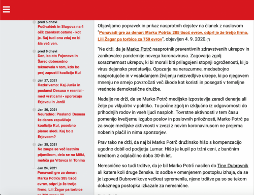 Sicer ga seveda ni objavil na način, kot mu je bilo to naloženo s strani sodišča (gre za objavo na neustrezni povezavi, na neustrezen način – objavil ga je na čudni podstrani beta.publishwall.si). Na naslovnico, če se ne motim, popravka seveda ni dal. Tudi ga ni več moč videti na prvi strani. Kar s članki v njegovem stilu proti meni ni tako. Po domače; skril je ta popravek. Kljub temu, da je to seveda v nasprotju z marsičem. A me to ne moti. Dovolj je, da mu je bilo dokazano zmotno početje. S sodišča sem dobil informacijo, da je sodba postala pravnomočna 19.1.2021. Čeprav se je na tviterju še v januarju sprenevedal, da on o tem nič ne ve, ker bi naj bil narok odpovedan (nimam besed za to, res).