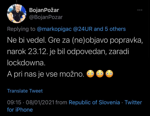 In čas mi je dal več kot prav. Na žalost. Bi si želel, da ne bi bilo tako. Poglejte, kje je slovenski narod danes. Da je novica to, da so jim veliki gospodarji končno dovolili, da si kupijo spodnjice in nogavice. Se vam to zdi normalno? A to bo ustavilo virus? Smo tam, da je v Sloveniji policijska ura že več kot 100 dni. Da je veliko majhnih podjetij že, veliko pa jih še bo propadlo. Da imamo jasen dvig poskusov samomorov med mladimi! Da so otroci dobesedno okradeni šole, ustreznega izobraževanja, druženja, socializacije... otroštva! Da bo veliko otrok zaradi teh nesmiselnih ukrepov, ki z virusom res nimajo nobene povezave, živeli v revščini, pomanjkanju, s travmami za vse življenje in verjetno bo tudi kak otrok izgubil starša, ki več ne bo zdržal usode, ki so mu jo tako rečeno zapovedali veliki gospodarji. Požar in mnogi drugi mediji so torej mnenja, da je vse to prav? Če so me tako »napadali«, ko sem na to opozoril. Ker opozoril sem zgolj na to. Nikoli nisem rekel, če uporabim vsebino prispevka na POP TV (v katerem sem bil tudi jaz in celo Luka Dončič!), da je »zemlja ploščata« ali kakšni drugo bizarnost. In takrat je bil v studiu tudi psiholog, za katerega se je kasneje izkazalo, da prodaja/posreduje maske in še kaj za mastne denarce.