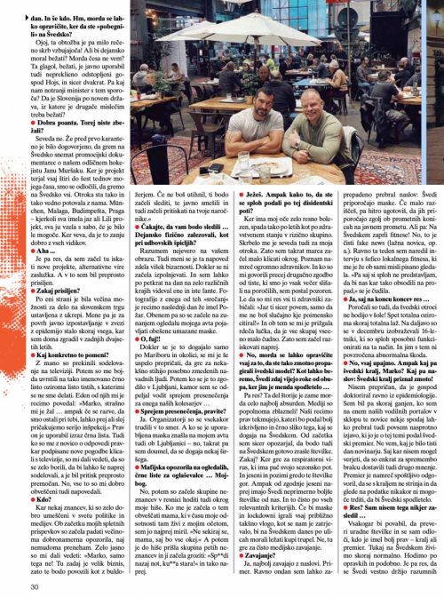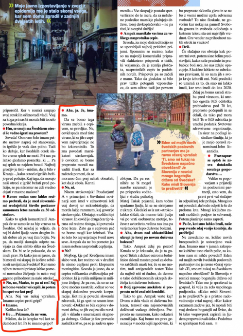 In za konec, da ne bi kdo rekel, da je po bitki enostavno biti general. S pomočjo poslušanja strokovnjakov, ki niso politično motivirani, sem v intervjuju za revijo Zarja, skoraj natanko na dan izjave našega premierja, 27.12.2020, napovedal natanko to, kar se dogaja zdaj. Prosim, ustavite se v intervjuju v tistem delu, kjer me novinar sprašuje o tem, ali ne verjamem, da bo s »cep.iv-0m« konec te nove realnosti. Zadnja stran, upam, da se vidi tekst.