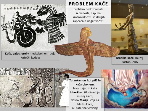 V ozadju je problem »kače« - problem možne nedozoreosti, sebičnosti, napuha, kratkovidnosti in drugih zapečenih negativnosti v običajnem človeku samem.