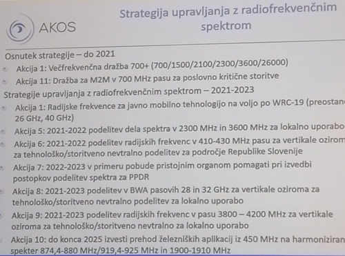 AKOS pripravlja triletno strategijo. V tem letu se pripravljajo na svetovno radijsko konferenco, World Radiocommunication Conference 2023 (WRC-23), ki bo decembra leta 2023 potekala v Dubaju- UAE.