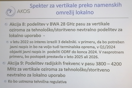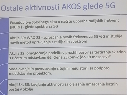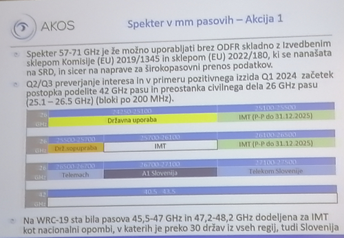 AKOS bo v drugi polovici leta 2023 preveril, ali je interes za uporabo frekvence 25-26 GHz in 42 GHz in če je, bo razpisal javno razpravo.