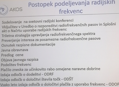 Ker bodo nekatere kmalu na voljo na javnem razpisu, je Agencija za komunikacijska omrežja in storitve in storitve Republike Slovenije (AKOS) 17. februarja organizirala delavnico, na kateri so predstavili pot do pridobitve frekvenc.