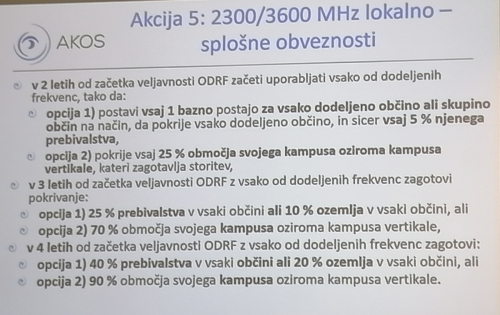 Zahteve za uvedbo 2300/3600 MHz na lokalni ravni: