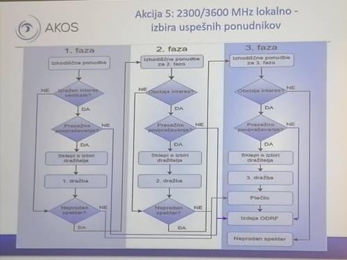 V vsaki občini bodo preverili, ali je povpraševanje po frekvencah večje od ponudbe. Če je, bo AKOS organiziral dražbo in cena spektra se bo višala v skladu s povpraševanjem. Po plačilu sledi upravni postopek in izdaja ODRF ( 3. faza). V 1. in 2. fazi je omejitev spektra na 1 leto (spektralna kapa).
