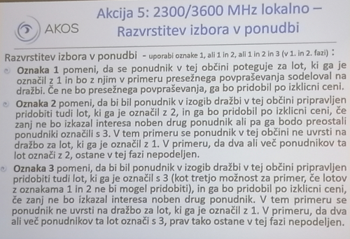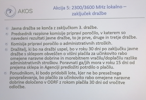 Če bo interes za te frekvence velik, bo AKOS organiziral dražbo. 1. faza javnega razpisa bo namenjena vertikalam in če niso zainteresirane, se bo prešlo v 2. fazo.